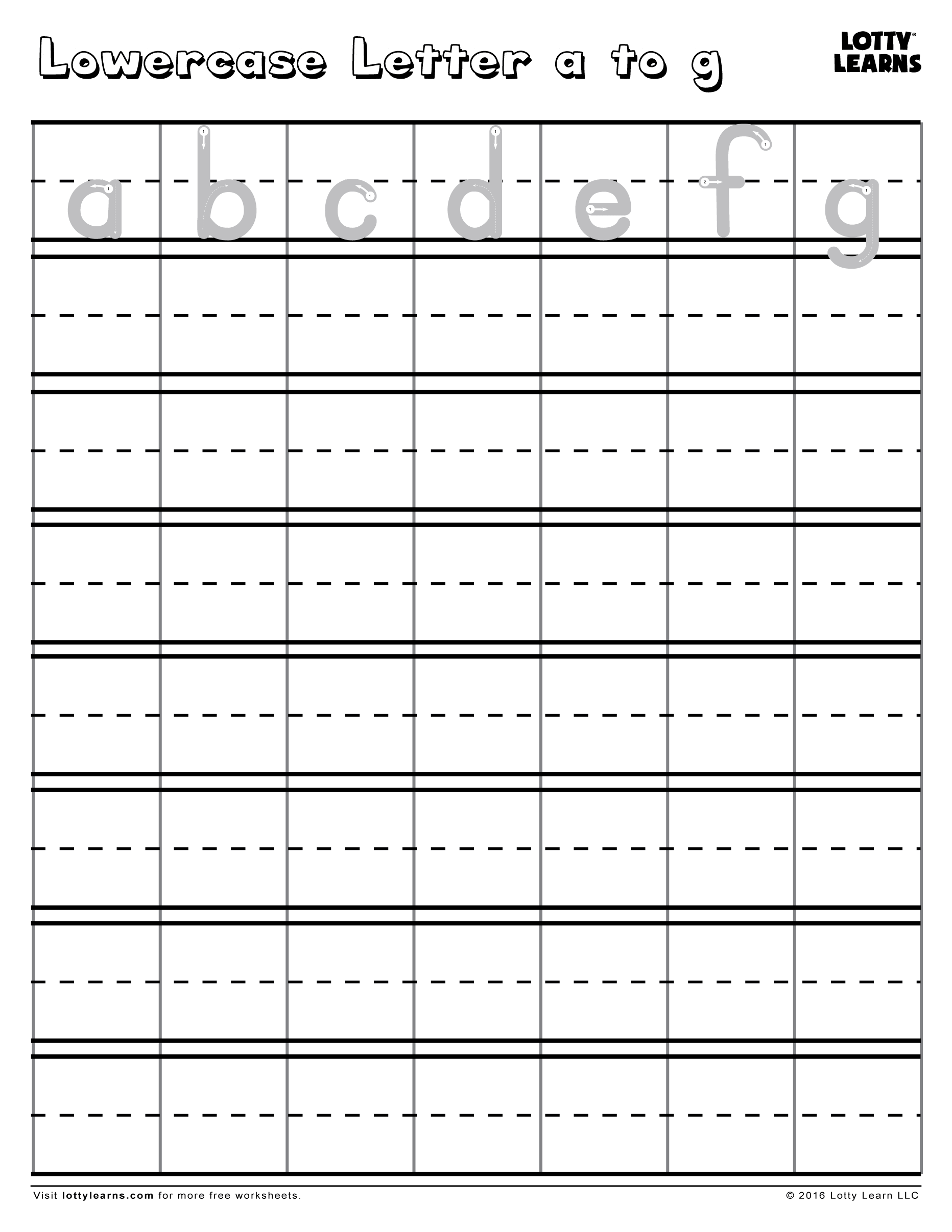 With a worksheet for letter a to g of the alphabet, your child will have a blast learning how to write by tracing each letter and writing by them self. Download now for free and give your child the gift of great handwriting!